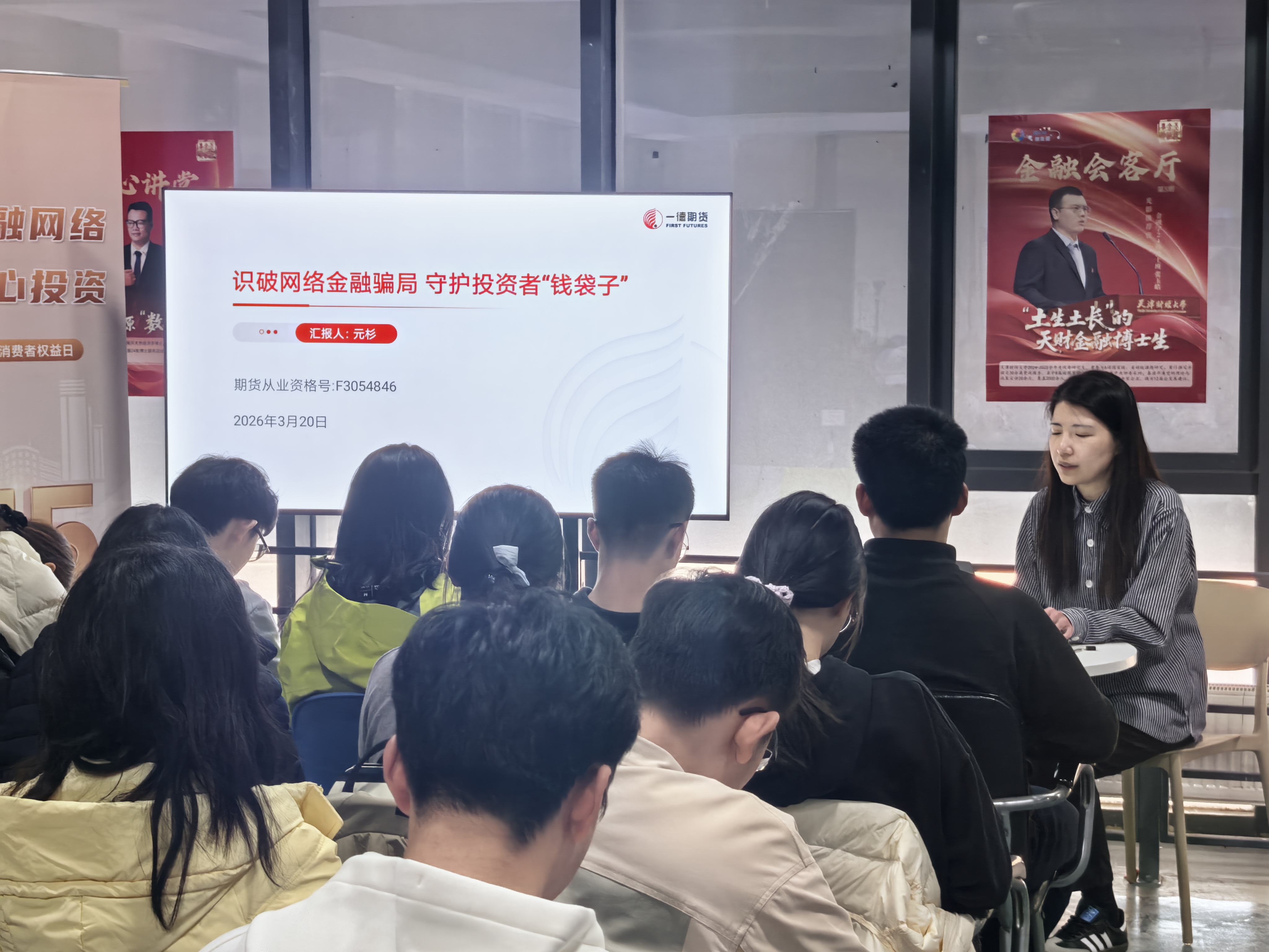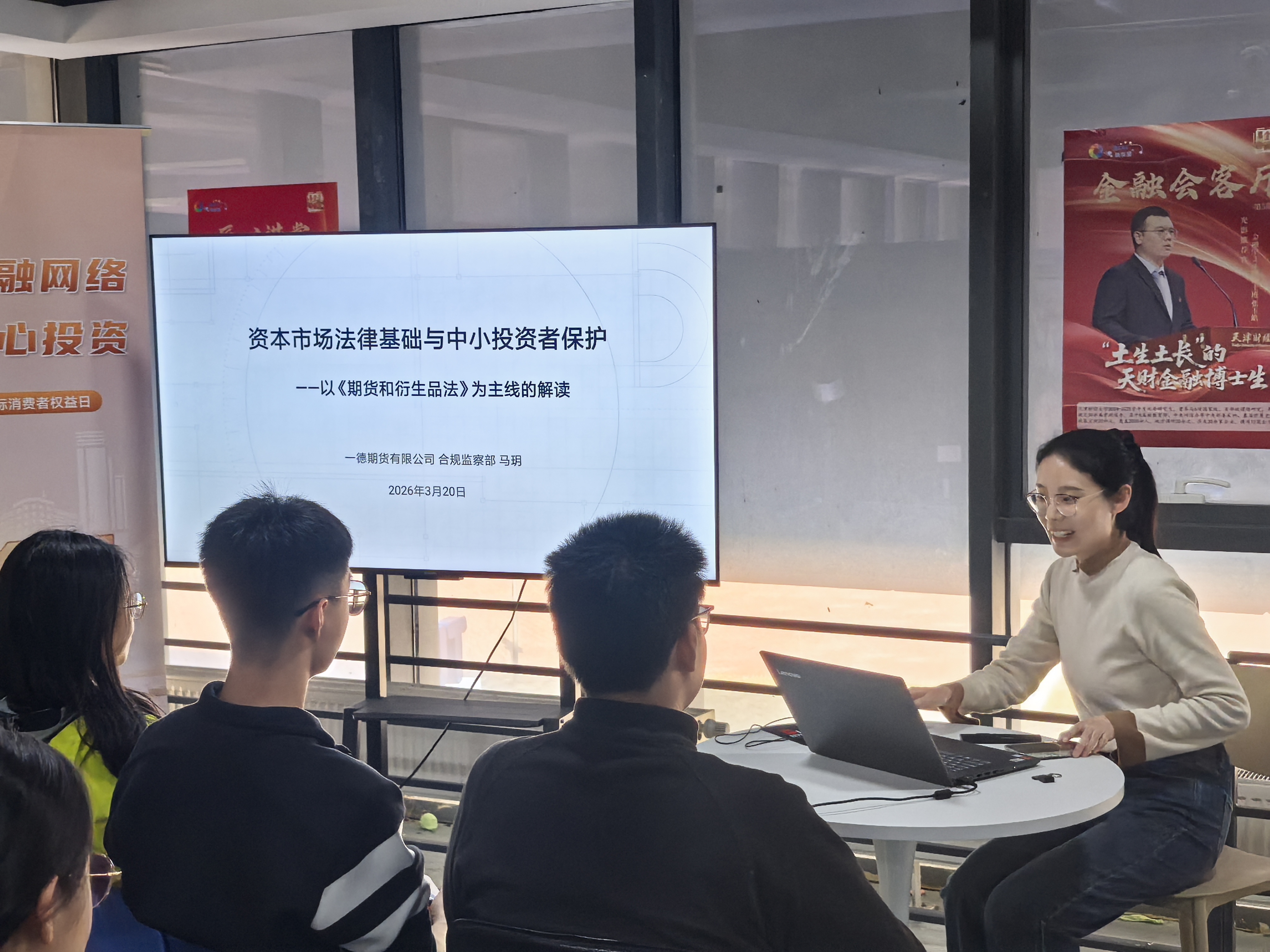 为积极响应监管部门关于投资者保护工作的号召,落实期货经营机构投教主体责任,一德期货有限公司及天津财经大学·一德期货联合投教基地(以下简称“一德期货投教基地”)2026年3月20日,在天津财经大学成功举办“DCE·中小同行——‘清朗金融网络 守护安心投资’3·15金融消费者保护宣传日”进校园专题培训活动,近40名师生现场参与。本次活动得到大连商品交易所与天津证监局的大力支持,旨在普及金融法律知识,提升大学生群体的风险识别与防范能力。