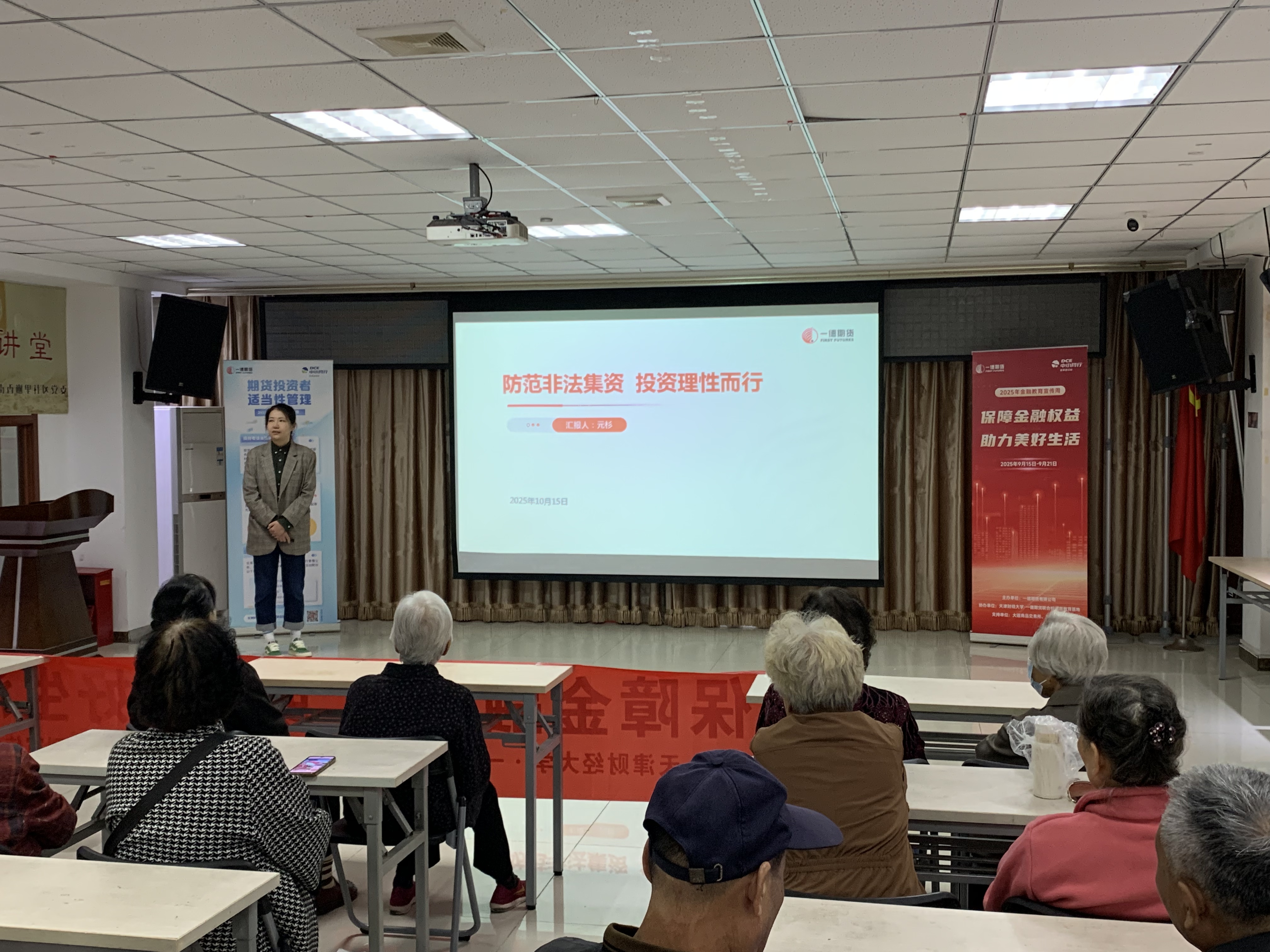 2025年10月15日,一德期货有限公司及天津财经大学·一德期货投资者教育基地(以下简称"一德期货投教基地")联合和平区财政局,在和平区香榭里社区成功举办"保障金融权益 助力美好生活"系列巡展第三场活动。本次活动以"警惕新型金融陷阱 守护百姓钱袋子"为主题,通过案例解析、互动体验等形式,为社区25位投资者普及金融安全知识,助力提升风险识别能力。