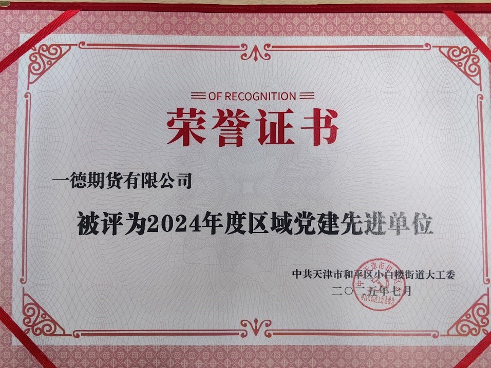 7月31日下午,天津市和平区小白楼街道组织召开2025年区域党建工作会议,一德期货作为辖区企业代表进行了交流发言。凭借过去一年在区域党建共建和创新实践等多方面的卓越表现,公司荣获“2024年度区域党建先进单位”称号。