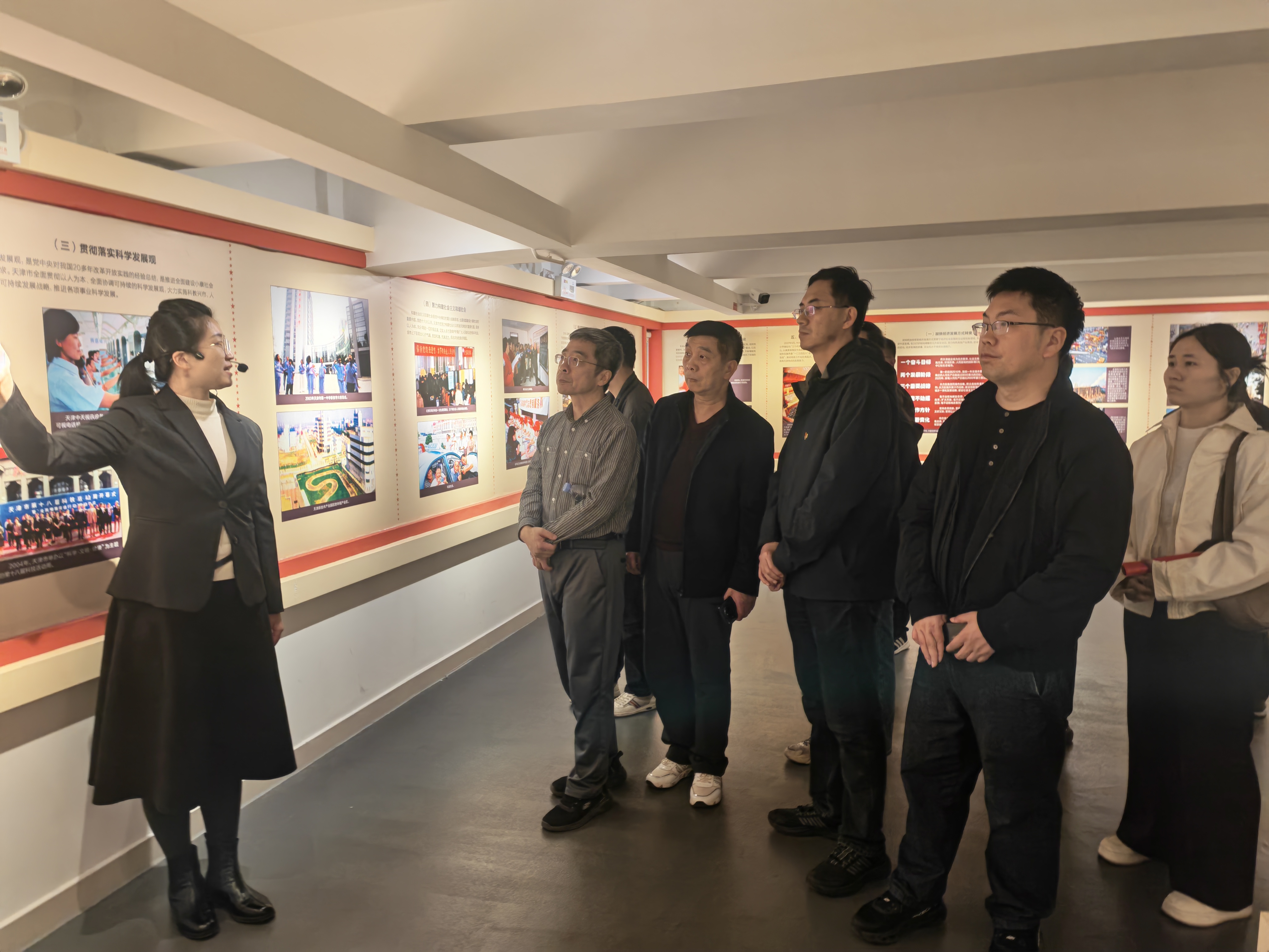 参观过程中,在纪念馆讲解员的引导下,党员们依次参观了三个展厅,认真聆听每一段历史背后的故事。从1924年中共天津地方执行委员会的成立,到革命战争年代党领导天津人民开展抗日救亡、解放天津的英勇斗争;从新中国成立后天津在废墟上重建家园、发展工业的艰苦创业,到改革开放后天津作为沿海开放城市的蓬勃发展,每一幅泛黄的图片、每一段感人的英雄事迹,都让大家直观感受到天津地方党组织的成长壮大,深刻体会到国家安全是民族复兴的根基、是人民幸福的保障。